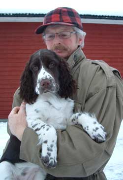 Her er vi ute i hagen. Jeg sitter øverst sammen med Ruben og kan kjennes igjen på det smale blesset. | I følge min matmor var og er jeg ikke spesielt enkel.... Her dreper jeg aviser og går inn for oppgaven med liv og sjel! |