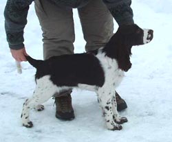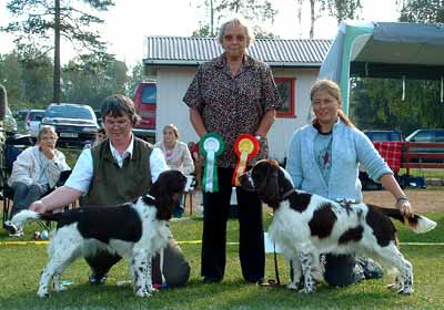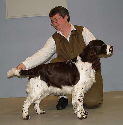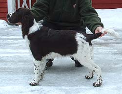 Lenger mellom bildene - jeg vokser ikke like fort som tidligere! Her er jeg 10 mndr. | Chelly debuterer på utstilling på Hundorp og det blir cert ig BIM selv om hun bare er ett år gammel. BIR ble Barecho Nothing to Declare. |