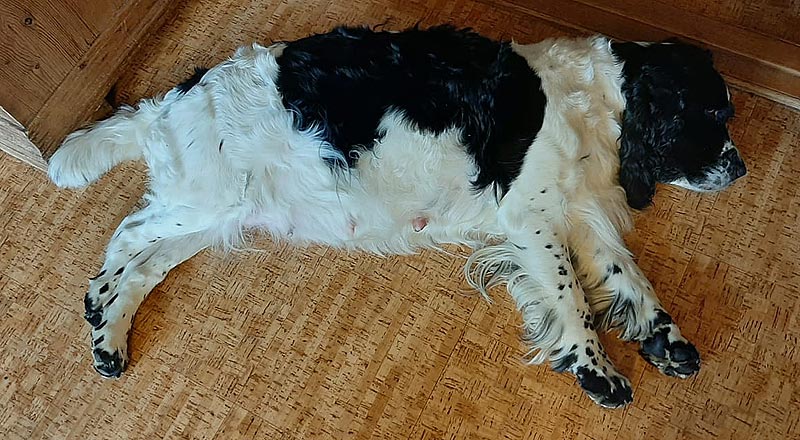 utover. Flekker på beina og på snute blir tydligere.