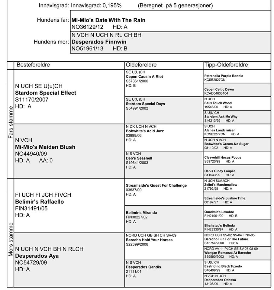 parring. Innavlsprosenten på dette kullet er lav, 1,95%, beregnet på